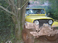 De Jeep van Marc 'Winchy' omhelst een boom...
